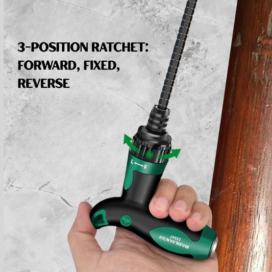 T-Handle 12-in-1 Dual-Use Ratcheting Screwdriver — Adjustable Length, Strong Magnetic Bit Holder, Chrome Vanadium, for Automotive, DIY & Home Repair
